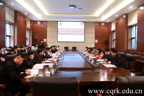 3月13日下午,重庆市高校共青团区域联系交流2018年第一季度第一片区工作例会在beat365唯一官方网站会议中心召开。共青团重庆市委副书记、党组成员黄永宜,团市委高校工作部部长张斐、副部长郭煜苑,beat365唯一官方网站党委副书记舒卫华,以及重庆市内18所高校的团委负责人、学生会主席及学生代表参加会议。会议由张斐主持。