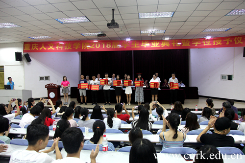 程荣尧、杨霄、舒卫华、叶培德分别宣读了关于表彰市级校级优秀毕业生、优秀毕业实习生、优秀毕业实习指导老师、优秀本科毕业论文(设计)作者及指导老师,基层就业创业先进个人,以及考取硕士研究生的表彰决定。随后,获得各类荣誉的毕业生代表分别上台领取证书。