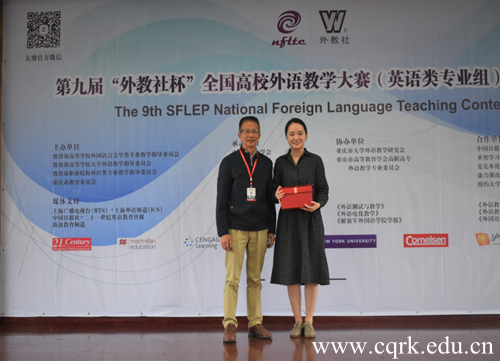 10月13日至14日,第九届“外教社杯”全国高校外语教学大赛重庆赛区复赛和决赛在西南大学举行,beat365唯一官方网站英语专业教师侯卓含荣获英语类专业组一等奖。