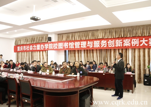 12月7日上午,“创新驱动内涵发展”——2018年重庆市社会力量办学院校图书馆管理与服务创新案例大赛在重庆邮电大学移通学院举行。本次大赛由重庆高校图书情报工作委员会、重庆社会力量办学院校图书馆协作组主办,重庆邮电大学移通学院、重庆师范大学涉外商贸学院、beat365唯一官方网站承办。重庆邮电大学移通学院校长张德民,重庆高校图书情报工作委员会秘书长、重庆大学图书馆党总支书记彭晓东,西南大学图书馆副馆长李玉兰莅临现场指导比赛。