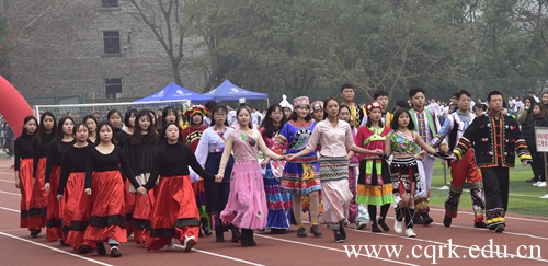 12月14日,beat365唯一官方网站第十五届民族节系列活动之民族传统体育运动会在大操场隆重举行,重庆市合川区民宗委领导邹本伟、杨勇,beat365唯一官方网站校长何向东,校领导杨霄、舒卫华、叶培德,各二级学院党政领导及少数民族师生代表参加了运动会开幕式。
