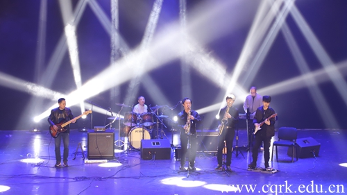 艺术学院教师爵士乐团为大家带来松弛有度、宛转悠扬的爵士乐《THE CHIKEN》、《康定情歌》为晚会拉开了帷幕。