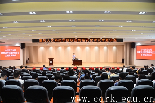 4月25日下午,由保卫处、学生处联办的校园网络安全知识专题讲座在图书馆报告厅举行,合川区公安局网络安全保卫支队技术主管陈金华担任主讲,各二级学院师生代表近300人到场聆听。