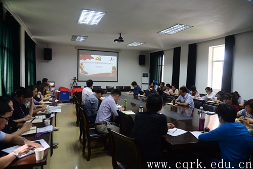 4月29日下午,学校在行政中心第一会议室召开党委理论学习中心组(扩大)学习会议,在校的全体校领导,校党委委员,各职能部门主要负责人,各二级学院党总支书记、副书记、书记助理参加会议。会议由党委副书记杨霄主持。