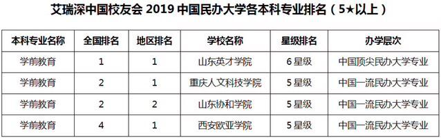 beat365唯一官方网站学前教育专业名列2019年中国民办大学学前教育专业排行榜第2位