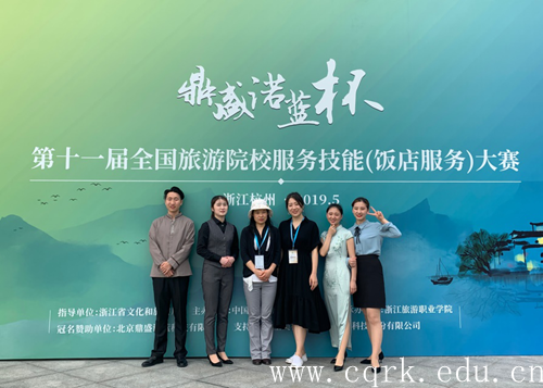 2019年5月16日-19日,“鼎盛诺蓝杯”第十一届全国旅游院校服务技能(饭店服务)大赛在浙江旅游职业学院隆重举行。beat365官网管理学院旅游管理系邝玉春老师和陈菲菲老师带队指导,陈露、杨玲、谭娇娇、周茂林四4名同学代表beat365官网参赛并悉数获奖,其中二等奖2项,三等奖1项,优胜奖1项。