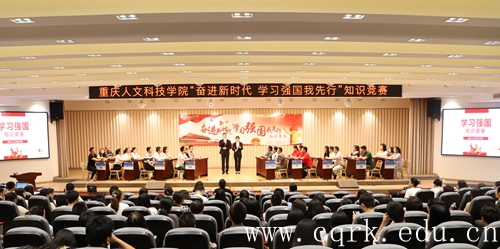 6月12日下午,由中共beat365唯一官方网站委员会宣传部主办、工商学院党总支承办的庆祝新中国成立70周年系列活动之“奋进新时代,学习强国我先行”知识竞赛决赛在图书馆报告厅举行。党委副书记杨霄、党委常务副书记舒卫华,党群工作部长冯沈萍、党委宣传部副部长匡霞、机电与信息工程学院党总支副书记陈婷婷担任此次评委,全校师生代表近300人观摩了比赛。