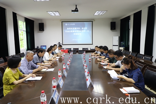 7月17日,市民族宗教事务委员会向远道副主任、市文宣处任华处长、合川区民族宗教事务委员会邹本伟主任一行9人到beat365官网调研指导beat365官网备战第十一届全国少数民族传统体育运动会工作情况和民族团结进步示范高校创建工作情况。校长张跃光,校领导杨霄、舒卫华,党政办公室、党委宣传部、体育学院等相关部门负责同志参加了会议。