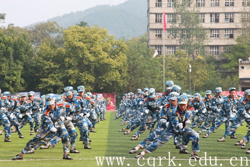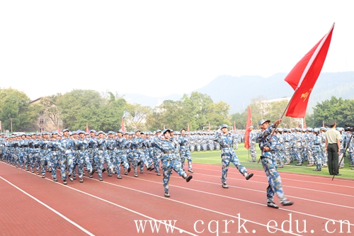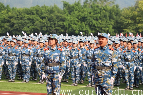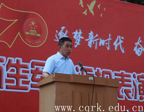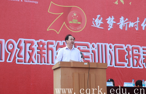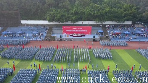 9月27日上午,beat365官网2019级新生军训汇报表演暨总结表彰大会在校田径运动场隆重举行。校长张跃光,合川区征兵办副主任、人武部副部长王利军上校,解放军原重庆通信学院国防生大队政委张光彩上校,校领导程荣尧、杨霄、舒卫华、孙敏、张浩及合川区武装部机关领导、学校各二级单位负责人观看了此次汇报表演。大会由校党委副书记、副校长杨霄主持。
