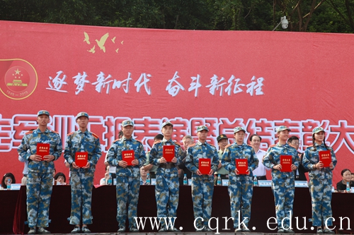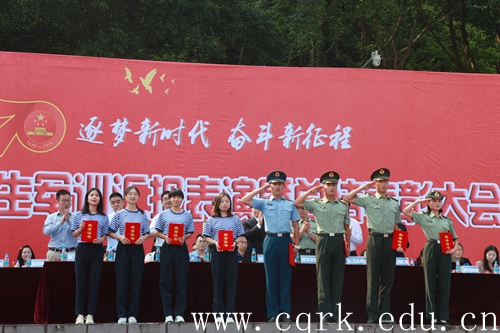 军训优秀教官代表、军训优秀参训教师代表领奖