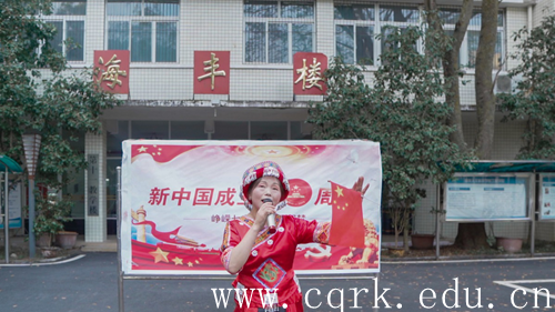 此次活动先后在海丰楼、行政中心和行知广场举行。在海丰楼前,苗族教师龙永仙身着苗族盛装,用苗语演唱《我和我的祖国》,两位身穿民族传统服饰的师生代表,高高挥动着鲜艳的五星红旗,从人群中缓步走出,深情和唱。伴随着歌声流淌,无数学子挥舞着鲜艳的五星红旗,从四面八方集聚在海丰楼围成半圆,歌颂祖国的声音直击心灵,拉开了此次活动的序幕。随后,合唱队伍分别在行政中心、行知广场进行了别开生面的演唱,当耳熟能详的旋律响起的时候,众多师生驻足围观,齐声合唱,拍照分享到朋友圈,吸引了越来越多的师生加入到歌唱祖国的行列,自豪和骄傲浮现在每一个人的脸上。