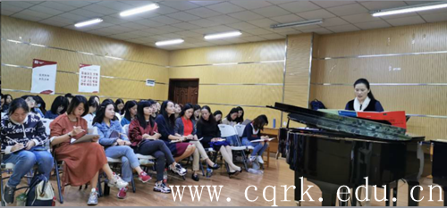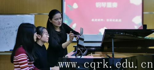 10月以来,张教授先后在校进行了“歌乐与钢琴合作”、“钢琴重奏” 集体课及专业小课的讲授,并举办了“布格缪勒练习曲弹与教”的精彩讲座。在授课过程中,张教授一一解说及示范,引导全体同学从音乐标题、相关文化、音乐术语、曲式、技巧等不同角度的品味钢琴艺术。