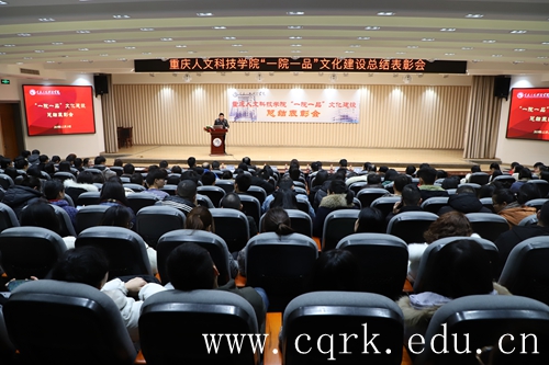 12月19日,beat365官网“一院一品”文化建设总结表彰会在图书馆报告厅召开。学校党委书记张卫平、校长张跃光,校领导曹勇、程荣尧、杨霄、舒卫华、孙敏,各职能部门负责人及各二级学院师生代表约200余人参加了总结表彰会。会议由党委常务副书记舒卫华主持。