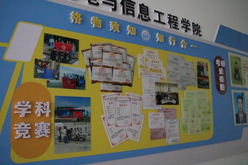 (二)两廊:即两个文化长廊,以毕业墙、学科竞赛为亮点,同时展示学院党团活动、优秀校友、考研光荣榜等项目。