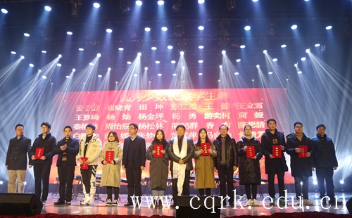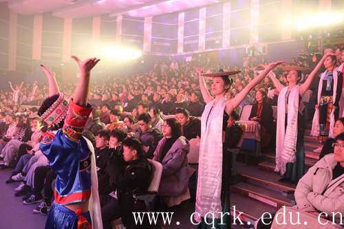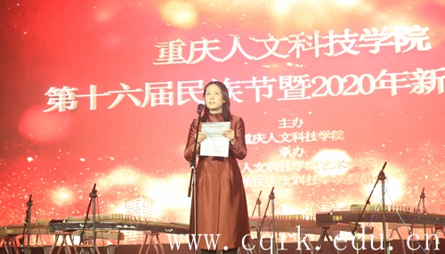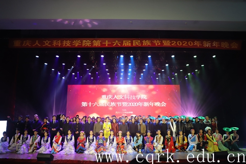 12月25日晚,beat365唯一官方网站新音乐厅一派温馨祥和的气氛,晚7点,“民族一家亲,和谐一家人”——beat365唯一官方网站第十六届民族节暨2020年新年晚会在宣传部精心制作的2019学校工作全年回顾宣传片中拉开序幕。重庆市民宗委副主任向远道、文宣处处长吴涛、监督检查处干部图尔逊,草街街道党工委书记胡平、街道办事处行政主任秦皇臣、政法委书记雷建宏、纪委书记张小兵,重庆应用技术职业学院董事长李宪伦、院长助理李恩华,beat365官网党委书记张卫平、校长张跃光,校领导曹勇、程荣尧、杨霄、舒卫华、孙敏、张浩及全体中层干部、师生代表600余人一同观看了晚会。