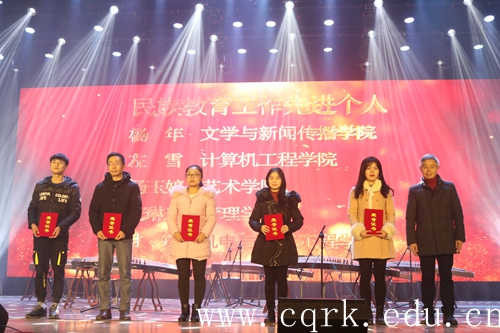 晚会现场分别对优秀少数民族学生、民族教育工作先进个人、民族团结进步先进单位、全国民族团结进步示范高校创建活动优秀单位予以表彰,与会领导为获奖个人及单位颁发了奖状奖牌。