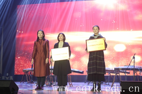 随后,晚会节目分为“自信,奋斗、创新、尾声”四大章节展开,13个师生原创的校园文艺精品节目轮番登台,集中展示了beat365官网文化育人工作的突出成绩。第一章一曲体现中国特色音韵美的古筝重奏《蝴蝶泉边》,琴声悠悠,时而千军万马气势如雷鸣,时而小桥流水细腻轻缓,充分展现中国古乐器的雅俗共赏,彰显了中华优秀传统文化的文化自信;第二章节“奋斗”伴随着民族器乐二胡演奏悄然而至,王宁老师的一曲原创音乐《三江弦歌育才情》,尽显迂回曲折,独特的音色如泣如诉般述说着学校“志者竟成”的铿锵足音,鼓励着届届学子刻苦奋斗,再创辉煌,现场师生甚是共鸣,掌声雷动;大学生民族艺术团用自己乐于奉献,分享快乐的初心为我们带来了朗诵《山茶花开》,让暑期三下乡支教扶贫的志愿者身影如剧目一般一幕幕地呈现出来,感动、赞美、力量、热爱交融升温,将他们对艺术的热爱以及下乡生活的快乐表现得淋漓尽致;女高音独唱《玛依拉变奏曲》,艺术学院杨娜老师一开口就惊艳全场,独特的嗓音和优美的曲调,将整场晚会推向高潮;晚会第三章“创新”,独具匠心地将民族体育竞技、武术表演结合在一起,展现了中国传统武术的独特魅力。