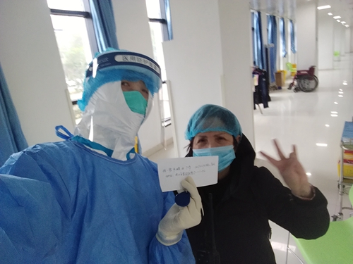 吴豪杰(右一)安慰新冠肺炎患者