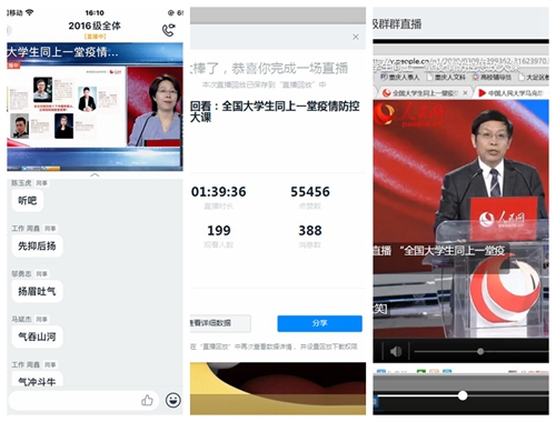 直播结束后,教师们在组织学生展开讨论。同学们表示,在举国上下万众一心、众志成城做好新冠肺炎疫情防控工作的特殊时刻,疫情防控“思政大课”就像是一场对大学生思想政治教育的“及时雨”,对学生来说是一场思想的大洗礼,更是一次很宝贵的提升;同学们谈到,疫情胜利来之不易,平安健康就是幸福,社会主义制度优越,党的领导、人民军队好,中国综合实力及理论道路的正确性得到展示,我们对疫情战胜充满必胜信心,坚信在中国共产党的正确领导下,中国人民万众一心,众志成城,一定可以战胜病魔。作为青年大学生,我们一定努力学好本领,不忘初心,不负韶华,为未来国家建设打下坚实的知识基础。