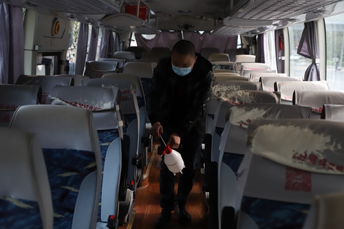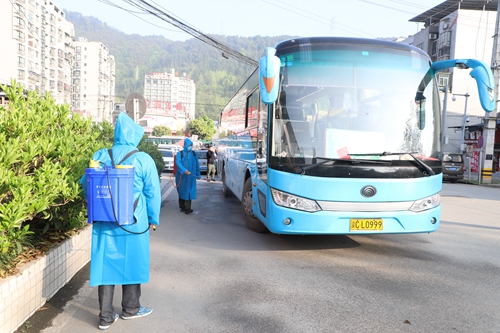师生下车后,车辆进行全面消毒