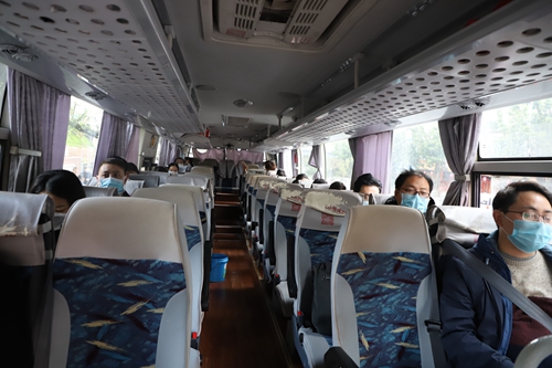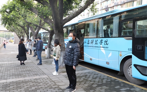 师生间隔至少一米排队乘车