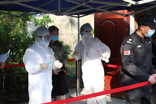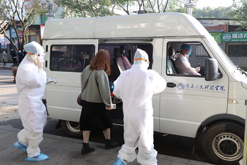 其他车辆进校进行登记并测量体温