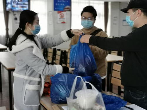 4月2日中午,护理学院教师为返岗进行合格评估和疫情防控工作的教职工们分发“驱瘟香包”。
