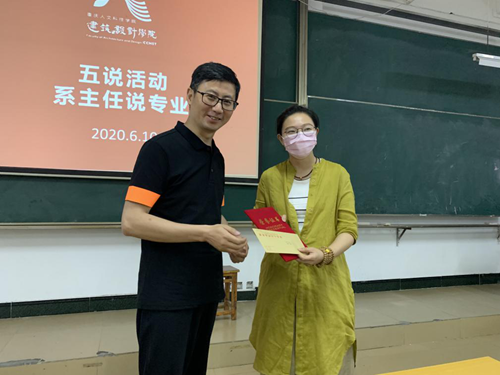 经过评委老师认真评审与严谨打分,艺术设计系白雪老师获得一等奖;建筑景观系肖晓芳老师、服装设计系刘丽雅老师、数字建筑系孙磊老师、园林园艺系林竹隐老师获得优秀奖。学院领导分别上台为几位系主任颁奖。