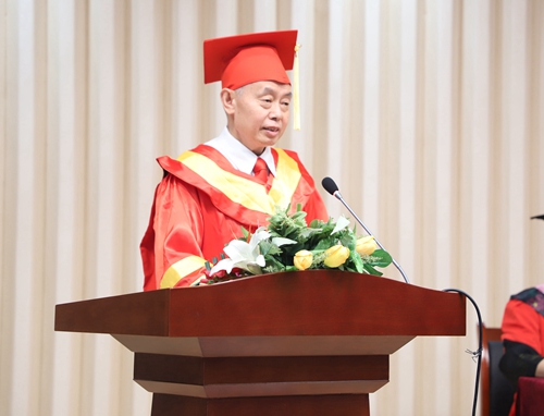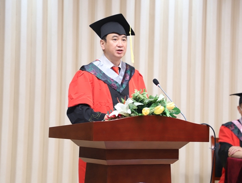 最后,校学位评定委员会主席、校长张跃光以“知行合一 敢于担当”为题发表讲话,他代表学校董事会、学校党委行政和全校师生员工,向圆满完成学业的同学们表示热烈的祝贺!向辛勤抚育同学们的父母、悉心教导同学们的老师、用心陪伴同学们成长的辅导员表示衷心的感谢和诚挚的敬意!他嘱托全体毕业生要牢记“厚德笃行,求真创造”的校训,坚守“捧着一颗心来,不带半根草去”的大学精神,锤炼品德,修养浩然正气,爱党、爱国、爱单位、爱家人、爱自己,在人生道路上走得更正、更远。