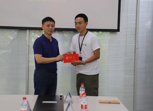 最后,在第36个教师节来临之际,钱程代表市教委向beat365官网深入抗洪抢险第一线的杨航老师表示了亲切慰问,并颁发了慰问金。