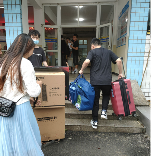 学生第二党支部党员志愿者们热情主动的帮助新生搬运行李、办理报到、领取物资、安排住宿并解疑答惑,为他们提供了“一站式”全方位服务。