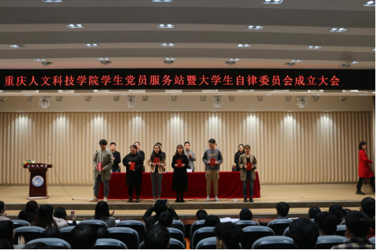 会议举行了学生党员服务站指导教师和大学生自律委员会干部代表的授聘仪式。