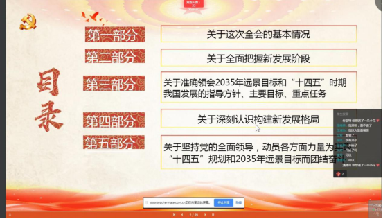 全体同学深感受益匪浅,纷纷表示,要切实提高自身素养,坚定理想信念,切实推动学习宣传贯彻党的十九届五中全会精神往深里走、往实里走,结合学习生活实际,将个人命运与祖国的发展相结合,努力学习,报效祖国。