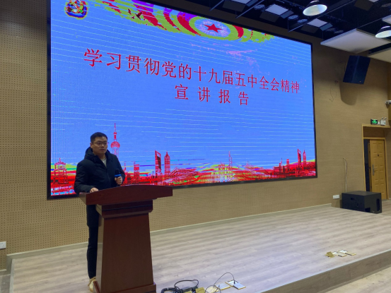 12月10日下午,党委书记张辉在学校行知报告厅进行了党的十九届五中全会精神宣讲报告。学校各级党委负责人,相关部门负责人,各二级学院老师及学生代表共240余人到场聆听。