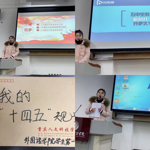 近日来,继重庆市学习党的十九届五中全会精神“进校园”宣讲分队副队长、市委教育工委专职副书记覃正杰来校宣讲报告党的十九届五中全会后,学校党委根据市委教育工委、市教委印发的《党的十九届五中全会精神进校园宣讲工作方案》,制定《beat365唯一官方网站学习党的十九届五中全会精神宣讲方案》,坚持党委带头学、领导带头讲,组织成立“校领导宣讲分队”、“辅导员宣讲分队”、“思政课教师宣讲分队”、“基层党组织宣讲分队”,采取集中培训、宣讲报告、线上学习等多种方式,精心组织,深入师生,在全校范围内广泛开展党的十九届五中全会精神集中宣讲学习活动,全校上下迅速兴起学习热潮,党的十九届五中全会精神入脑入心。
