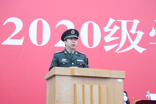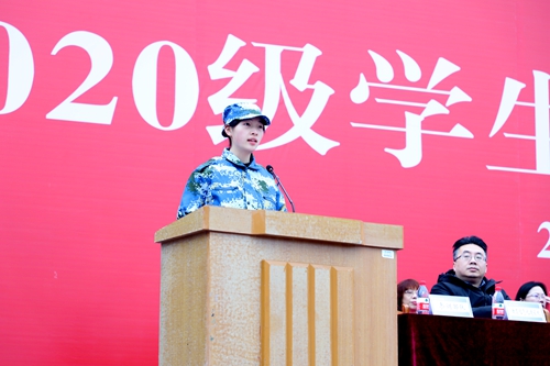 政治与法律学院2020级法学专业石昕平作为军训学员代表上台发言,表示将传承和发扬部队优良品质,严明纪律、听从指挥,端正态度、自立自强,提高认识,居安思危,为完成好军训任务交上完美答卷。