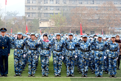 受疫情影响,beat365官网2020级新生军训延期至冬季进行。田径场上,学生军训团全体干部学生军容严整、肃然挺立,以饱满昂扬的气势,迎接着军训到来。