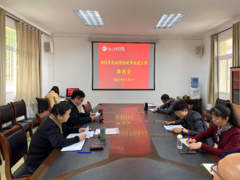 3月31日上午,学校在行政中心第二会议室召开2021年民族团结进步创建工作推进会。党委书记张辉,党政办公室、党群工作部、党委宣传部、党委教师工作部、党委学生工作部、党委保卫部、教务处、团委主要负责人参加了会议。会议由党群工作部部长冯沈萍主持。