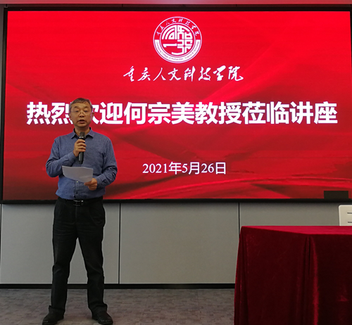 5月26日,学校行知大讲堂·学术前沿讲座(第一期)在行知楼1208报告厅正式开讲。享受国务院政府特殊津贴、教育部国家级人才、重庆市首批哲学社会科学领军人才、西南大学博士生导师、教授何宗美应邀登台,以“复兴与变革——明代及其文学的重估”为题,为全校师生作了一场精彩学术讲座。本次讲座由学校科研处与巴蜀文化研究中心主办,校长助理、教务处处长双海军全称参加、全校百余名师生到场聆听。讲座由科研处处长肖亚成主持。