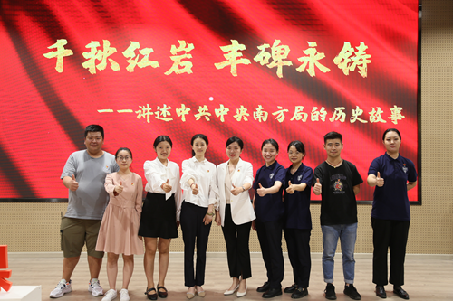 本次情景式党课由管理学院党总支书记吴静主讲,以中共中央南方局的历史故事为主线,通过课程讲授与情景再现相结合的方式,生动讲述了以周恩来同志为代表的老一辈无产阶级革命家领导南方局在国统区所作出的艰苦卓越的抗日民族统一战线工作,并介绍了红岩精神孕育产生的过程及其深刻的精神内涵。