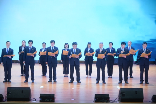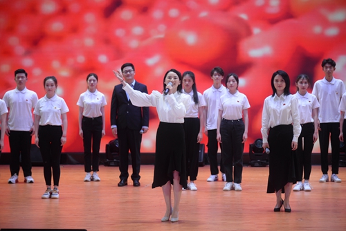 随着党委书记张辉,校长张跃光,全体党员校领导、党委委员的集体登台诵读,到场师生《永远跟党走》的不变信念空前高涨。