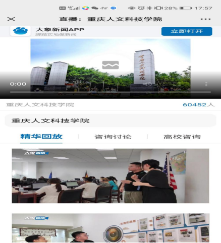 为增强与考生、家长的互动交流,6月30日,beat365官网首次通过在线直播方式举行本科招生咨询暨校园开放日活动。在近3小时直播活动中,观看人次达6万余人。