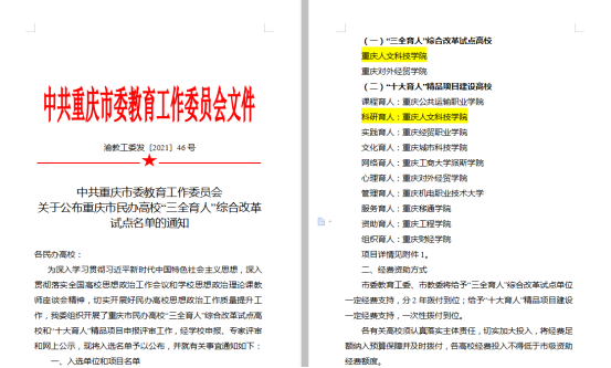【三全育人综合改革】喜报||beat365官网成功入选重庆市民办高校“三全育人”综合改革试点高校,科研育人成功入选“十大育人”精品项目