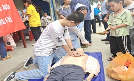 同时,为提升当地居民的急救意识和能力,实践团就急救中常用的心肺复苏操作为居民们进行了现场操作、演练,详细讲解了心肺复苏适用情况、抢救时的注意事项,鼓励村民积极学习,现场操作、练习。现场学习急救技能的居民表示:志愿们送来的知识真是及时雨,尤其是急救技术,在很多时候都能派上大用场。