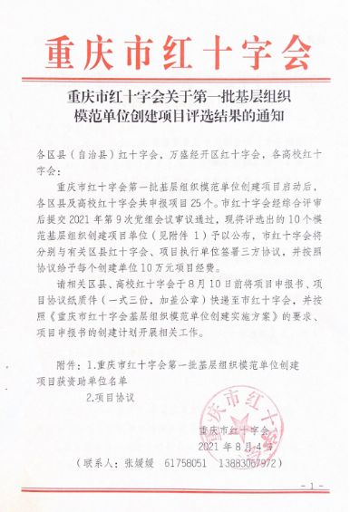 《重庆市红十字会第一批基层组织模范单位创建项目评选结果通知》