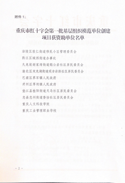 重庆市红十字会第一批基层组织模范单位创建项目获资助单位名单