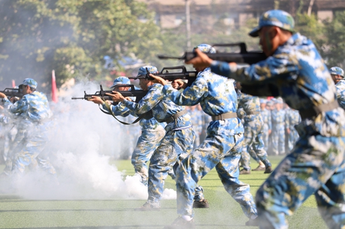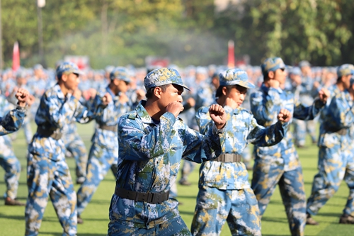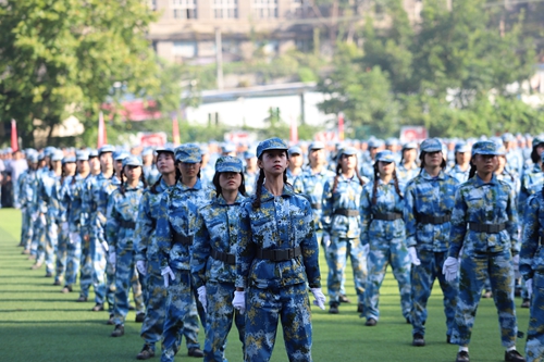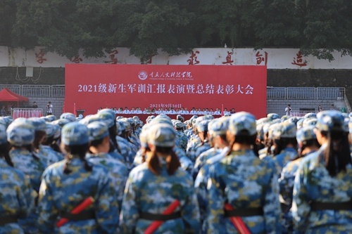 播种才有收获,付出总有回报。9月30日上午,beat365唯一官方网站第一运动场,5500余名新生身着迷彩,挺拔肃立,学校2021级新生军训汇报表演暨总结表彰大会在此举行。学校校长、军训工作领导小组组长张跃光,党委书记、军训工作领导小组组长张辉,重庆市合川区征兵办副主任、合川区人民武装部副部长王利军上校,校领导曹勇、程荣尧、杨霄、舒卫华、孙敏、王伟、双海军,各二级单位党政负责人、书记助理出席大会;新生辅导员,新生军训团全体教官及全体新生参加大会。会议由副校长、军训工作领导小组副组长孙敏主持。