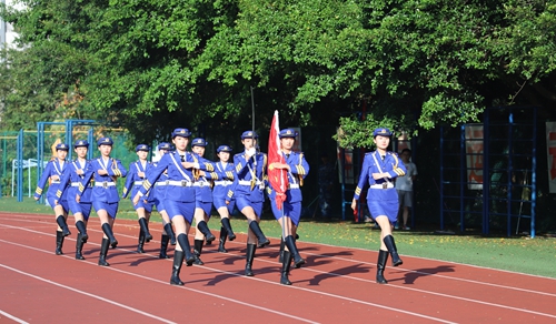 最先亮相的是分列式。在激昂的分列式进行曲中,参加分列式表演的12个方队,扛着鲜红的队旗,迈着矫健的步伐,喊着响亮的口号,英姿飒爽、昂首阔步地依次走过主席台,完美呈现了新时代大学生的朝气蓬勃、昂扬向上,让到场领导老师同学和观众的掌声根本停不下来。