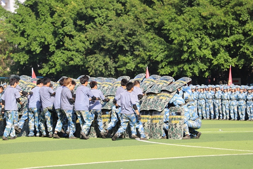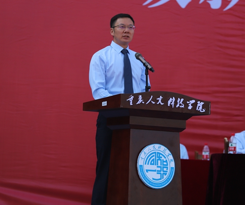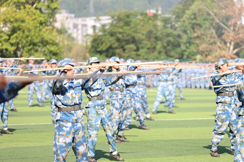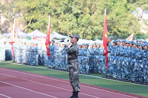 学校党委副书记、军训工作领导小组副组长、军训团政委舒卫华在讲话中对14天军训成果给予了高度肯定,他代表学校党政及全体领导对全体新生表示衷心祝贺,对承训教官、参训教师和合川区人武部表示衷心感谢。他讲到,学校在全市高校中率先探索军训试点改革,全体新同学和参训教官、参与教师用实际行动交上了一份成绩亮眼的优异答卷,积累了丰富经验,取得了圆满成效。他希望全体新生,一是要赓续红色血脉基因。自觉以革命先烈和先辈为楷模,始终做共产主义远大理想和中国特色社会主义的忠实拥护者、践行者。二是要继续践行青春誓言。以朋辈中的先进典型为标杆,用舍我其谁的锐气,永不言败的勇气,践行新时代大学生的使命和担当,自觉做新时代的追梦人、逐梦人;三是要持续巩固军训成果。以中国人民解放军为榜样,学习他们的光荣传统和优良作风,珍爱和平、珍惜美好的大学时代,用奋斗吹响青春的号角,为实现中华民族伟大复兴的中国梦时刻准备着,始终做担当民族复兴大任的生力军、主力军。