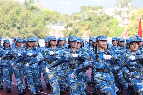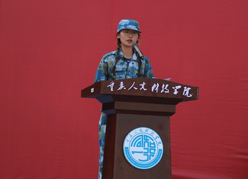 受表彰学员代表、四营50连陈韵如同学在发言中对学校的精心组织和教官的耐心指导表示感谢,认为军训让全体新同学迎难而上,勇于拼搏,不断挑战自我,变得更加勇敢与坚强。经过军训洗礼锻炼,自己和每名新同学都将不负青春,砥砺前行。